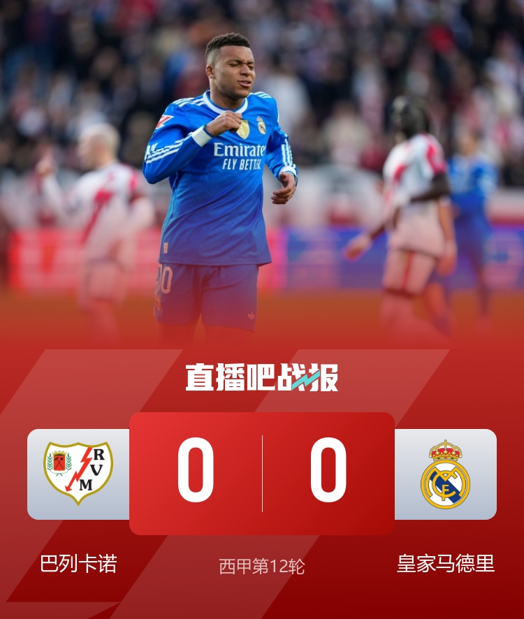 一視同仁!巴列卡諾主場0-0皇馬、1-1巴薩