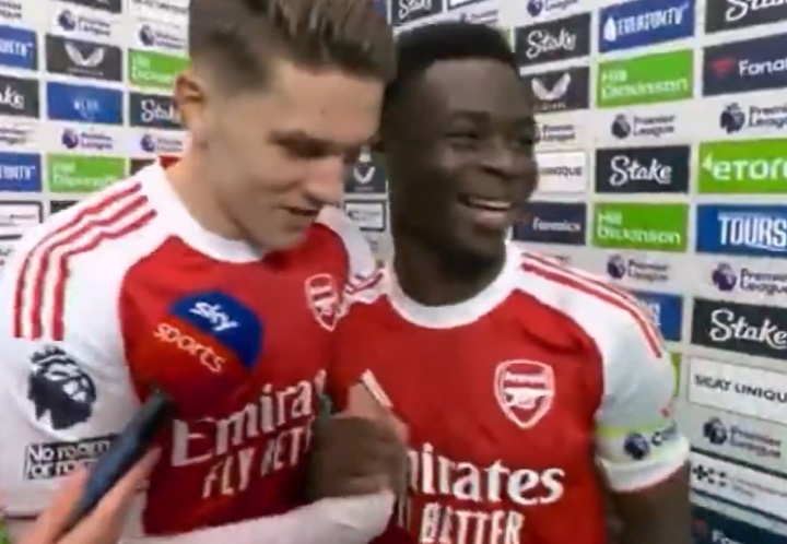 約克雷斯賽后給薩卡頒獎:拿好了兄弟,家里還有位置放獎杯嗎